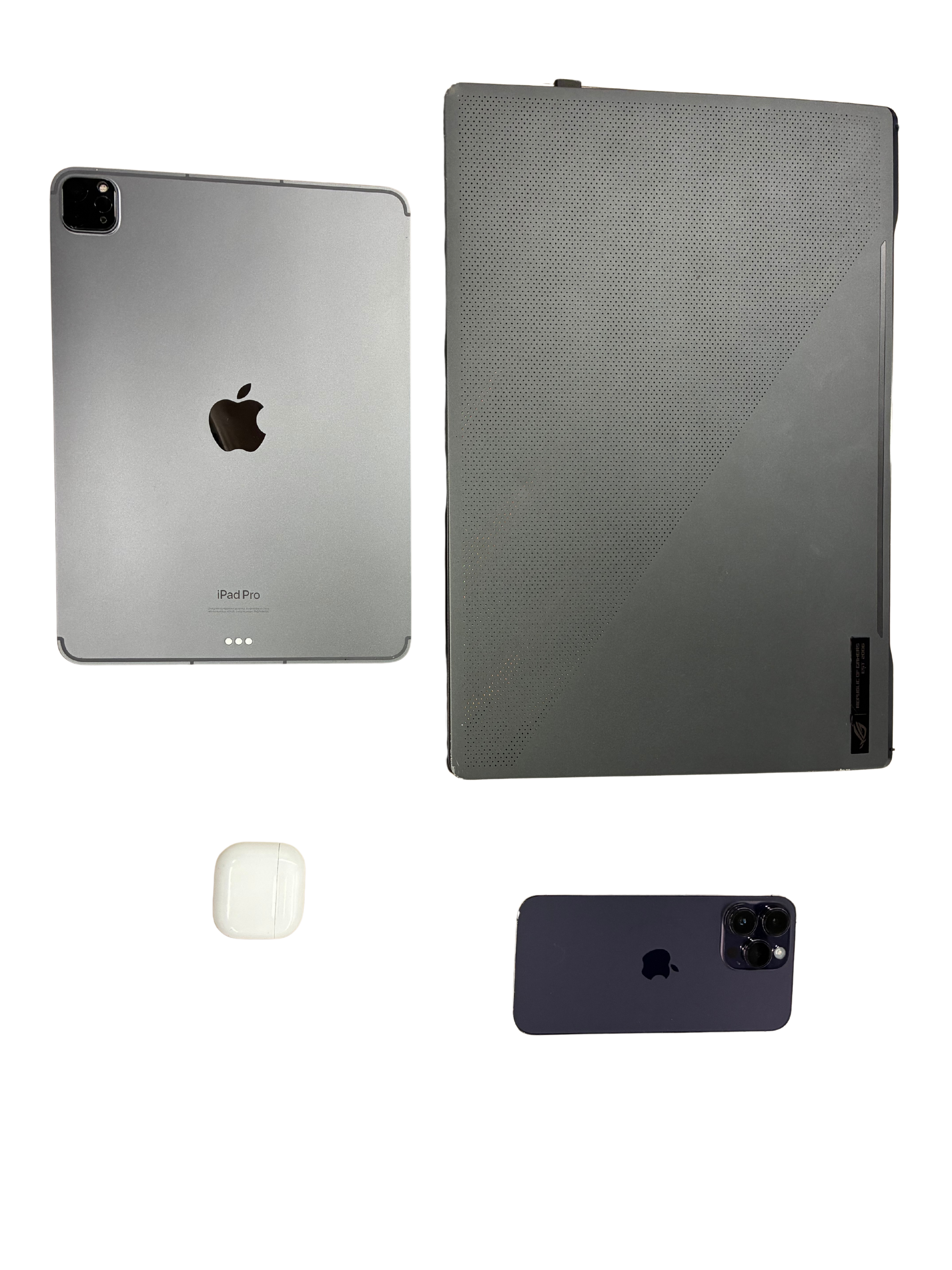 These are my tools. The MacBook Pro for development, the iPad for design work, AirPods for those deep focus sessions. Every piece of tech here serves a purpose in building better products and improving my craft.